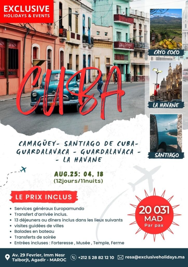 Vibrez au son de la salsa, flânez dans les rues colorées de La Havane et Trinidad, et laissez-vous séduire par les paysages verdoyants de Viñales. Entre plages de rêve, voitures américaines d’époque et l’arôme des cigares, Cuba vous promet un voyage hors du temps, riche en rencontres et en émotions. Une expérience authentique et inoubliable vous attend.